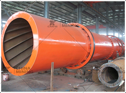 物料由皮帶輸送機送到料斗,然后料斗的加料機通過加料管道進入加料端,加料管道的斜度要大于物料的自然傾角,以便物料順利流入烘干機內,烘干機圓筒是一個與水平線略呈傾斜的旋轉圓筒。物料從較高一端加入,載熱體由低端進入,與物料成逆流接觸,也有載熱體和物料一起并流進入筒體的。隨著圓筒的轉動物料受重力作用運行到較底的一端。濕物料在筒體內向前移動過程中,直接或間接得到了載熱體的給熱,使濕物料得以干燥,然后在出料端經皮帶機或螺旋輸送機送出。