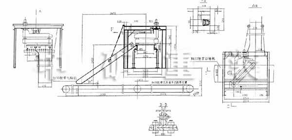 1、A向視圖中箭頭表示水泥包由B800膠帶運輸機電動轉彎溜子運到B650膠帶機。
