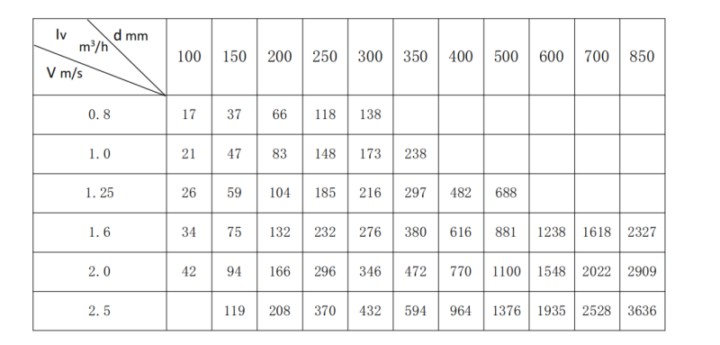 表2:管徑d、帶速v和輸送能力IV的匹配關系