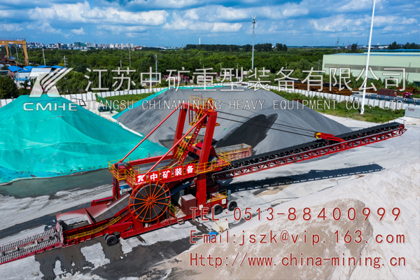 該設(shè)備包括行走機(jī)構(gòu);鏈板進(jìn)料裝置;帶式輸送機(jī)系統(tǒng);臂架俯仰機(jī)構(gòu);臂架旋轉(zhuǎn)機(jī)構(gòu);卡車(chē)爬坡裝置;液壓系統(tǒng);控制系統(tǒng);配電系統(tǒng)(移動(dòng)式電站)等。全部系統(tǒng)可以在堆場(chǎng)場(chǎng)地內(nèi)移動(dòng),行走機(jī)構(gòu)的行走輪采用重載汽車(chē)實(shí)心輪胎,無(wú)須在堆場(chǎng)內(nèi)布置固定軌道,增加堆場(chǎng)利用率;進(jìn)料裝置與輸送懸臂集為一體,二者均安裝于一個(gè)公共底盤(pán)之上,構(gòu)成一體式移動(dòng)堆高機(jī);臂架俯仰機(jī)構(gòu)采用鋼絲繩俯仰形式,臂架旋轉(zhuǎn)機(jī)構(gòu)采用回轉(zhuǎn)減速電機(jī)和回轉(zhuǎn)軸承,配電系統(tǒng)采用發(fā)電機(jī)組和電纜卷筒供電,整個(gè)系統(tǒng)具有完整地獨(dú)立性。