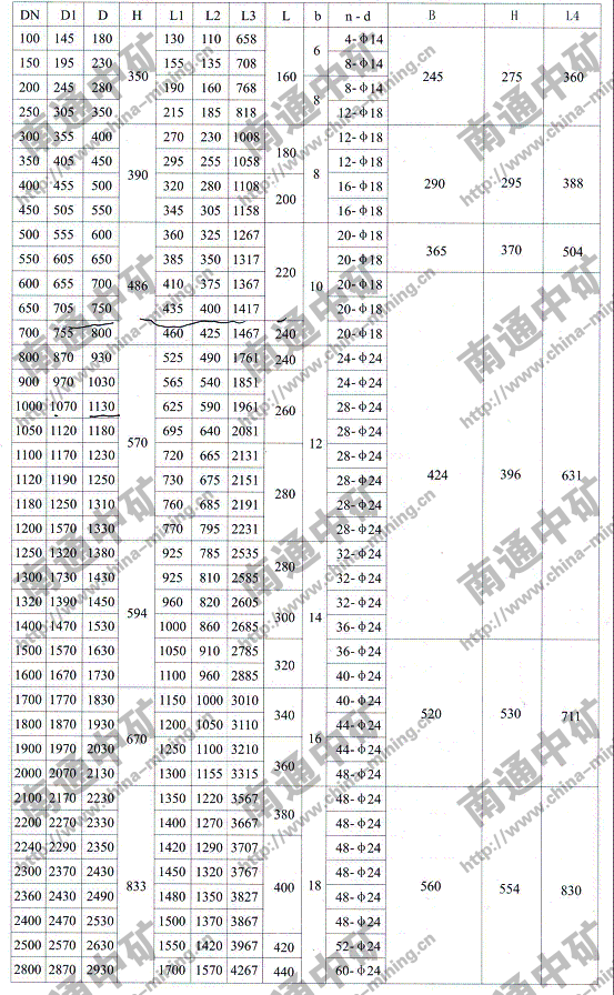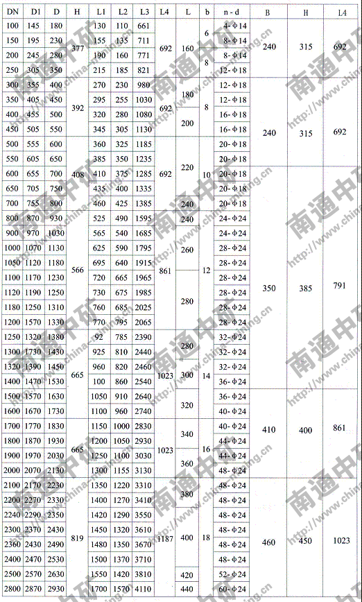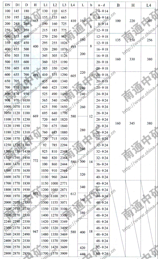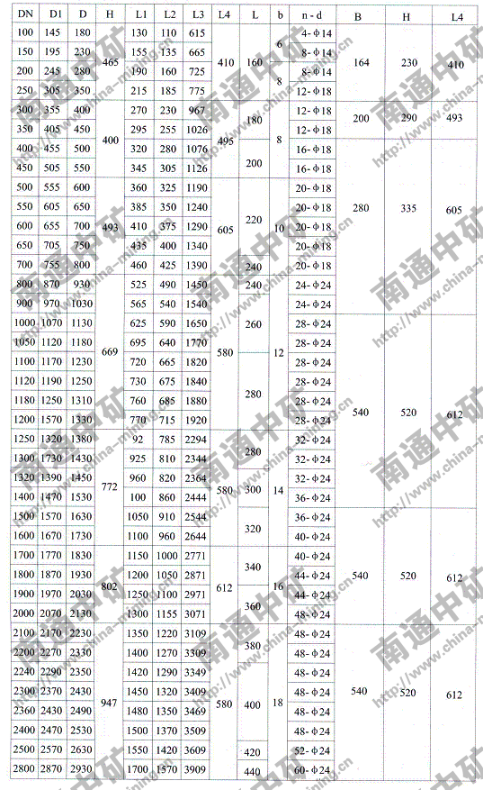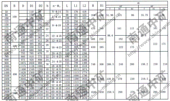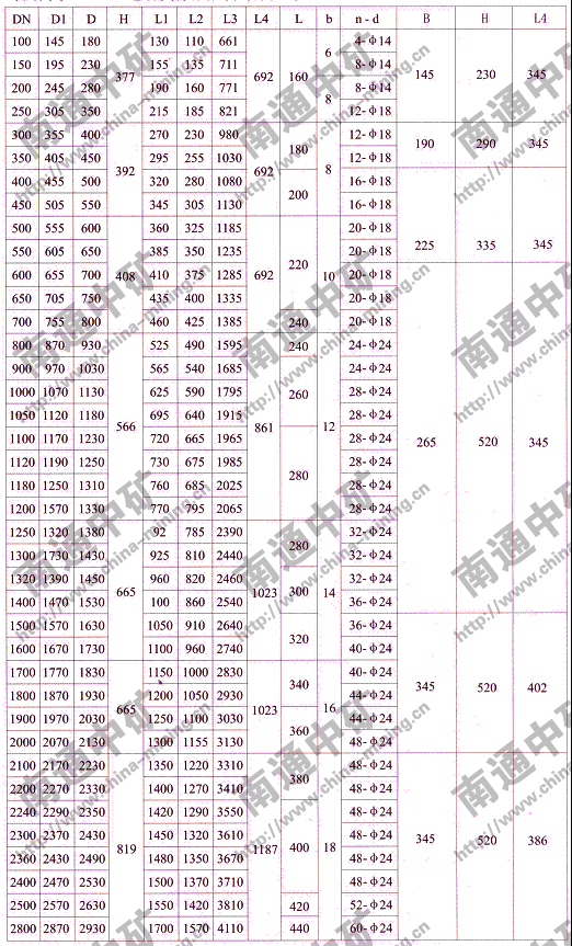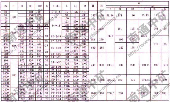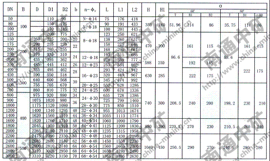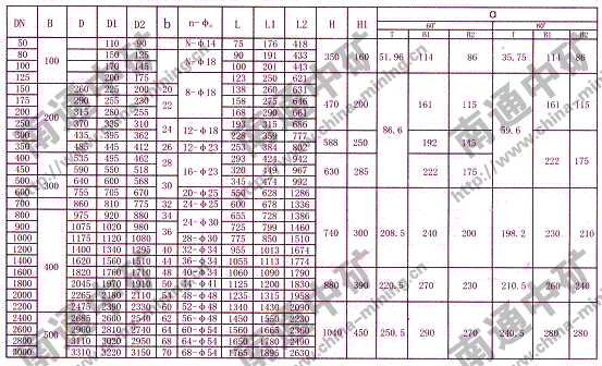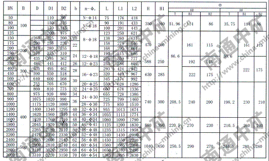 注:法蘭連接符合JB78-59《管路附件、法蘭連接尺寸》PNO.6Mpa規定,也可心按用戶要求采用其它標準。