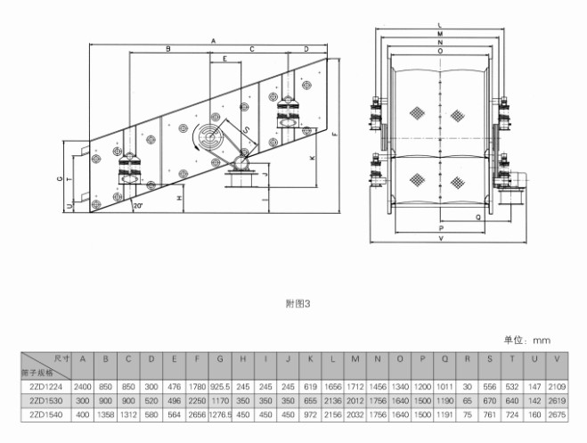 直線振動篩采用雙振動電機驅動,當兩臺振動電機做同步、反向旋轉時,其偏心塊所產生的激振力在平行于電機軸線的方向相互抵消,在垂直于電機軸的方向疊為一合力,因此篩機的運動軌跡為一直線。其兩電機軸相對篩面有一傾角,在激振力和物料自重力的合力作用下,物料在篩面上被拋起跳躍式向前作直線運動,從而達到對物料進行篩選和分級的目的。