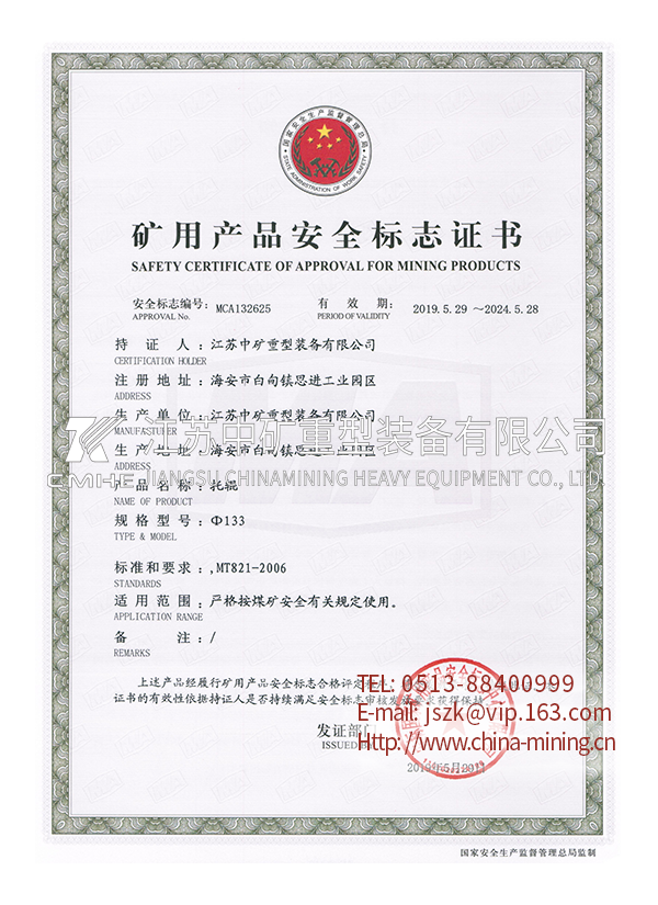 托輥——礦用產(chǎn)品安全標(biāo)志證書