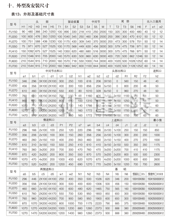 允許在機殼任何位置選擇多種形式的進出口料口,可高架、地面或地坑布置,可水或平爬坡(≤15°)安裝。