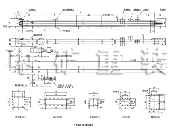 *兩臺鏈運機上下交叉銜接時,應分別采用中間節底面出料口(有帶閘的和不帶閘的兩種) 和兩側進料口。