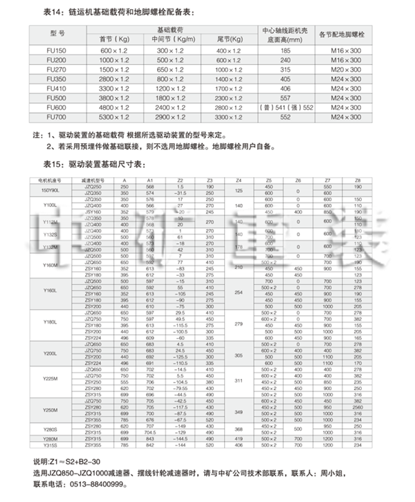 選擇驅動裝置時,可以選擇表中列出的Y系列6級電動機+ J ZQ系列減速器,或選用Y系列6級電 動機+ZSY系列減速器或者直接選用擺線針輪減速電機。