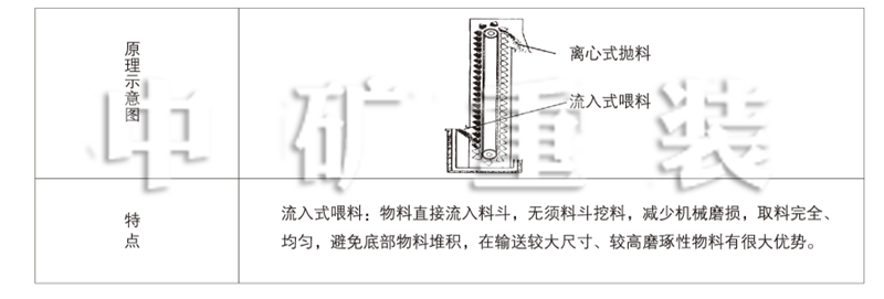 采取流入式喂料,離心式拋料,密集型布置的大容量料斗輸送,鏈速快,且提升量大。提升范圍為100~1600m3/h.